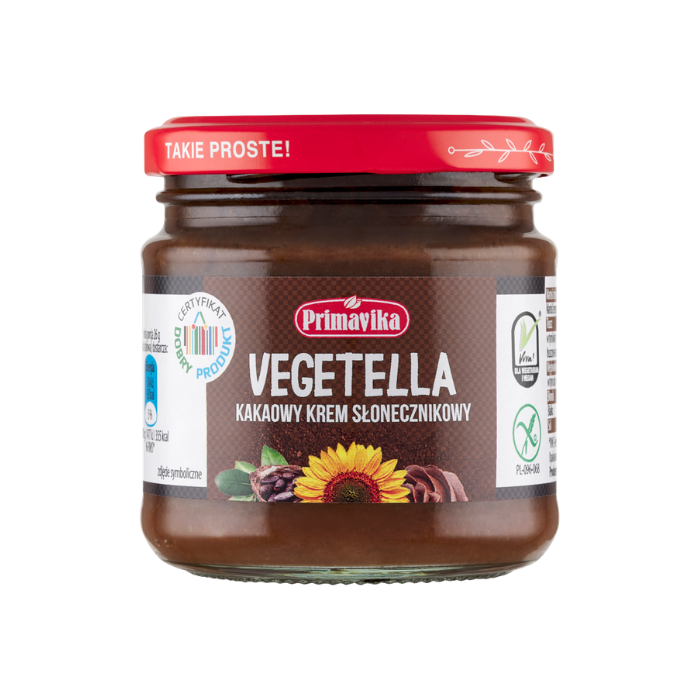 Cocoa sunflower seed cream is a perfect option for those who like intense and original flavours. The base of our product are sunflower seeds rich in folic acid and Omega-6 fatty acids that will support you in your efforts towards healthy lifestyle and strong bones. The main character of our spread – cocoa – contains not only zinc responsible for the condition of our skin, hair and nails, but also iron and B vitamins that support our immune system. These ingredients are complemented with date and agave syrups responsible for its unique taste and rich in high contents of magnesium that supports cardiovascular system. What is more, our product is gluten-free, that is why it will enrich the diet of those who avoid gluten. It will also add variety to the menus of vegetarians and vegans. The high-quality of our cocoa Vegetella is also proven by the international V-Label quality seal – it distinguishes products that do not contain any animal-derived ingredients. Did you know that cocoa was appreciated already in ancient times? The energetic beverage made of cocoa beans was being prepared by the Olmecs, Aztecs and Maya. What is interesting, at first it was considered a rare delicacy, therefore only high-rank persons were allowed to drink it. There were also special requirements concerning the vessel in which it was served – it had to be golden and rich in ornaments. In time, cocoa became recognizable also in other parts of the world and currently it is one of the most popular ingredients used in the kitchen to prepare, among others, truffles, dark sponge cakes or creams.