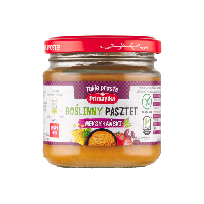 Meksykanie lubują się w esencjonalnych, ostrych w smaku potrawach na bazie warzyw strączkowych z dodatkiem pszennych, kukurydzianych tortilli lub nachos. Podstawą ich jadłospisu są kukurydza, fasola, papryka i chili. Nasz pasztet odzwierciedla tę tradycję – w składzie znajdziemy czerwoną fasolkę, kukurydzę, zielony groszek i cebulę, bazą jest pełnowartościowa ciecierzyca. Warzywa strączkowe to świetne źródło dobrze przyswajalnego białka i błonnika. W połączeniu z przyprawami tworzą mieszankę pobudzającą układ nerwowy i uruchamiającą procesy spalania zbędnego tłuszczu w komórkach. Pasztet polecany jest osobom na diecie redukcyjnej albo szukającym dodatkowego zastrzyku energii. Wyrazista propozycja jest dobra na chandrę – pikantny smak stymuluje produkcję serotoniny w mózgu. Wiecie, że potrawy zawierające sporo chili wpływają na wzrost zużycia tlenu nawet o 30 %? Efekt utrzymuje się nawet do godziny! Przyprawami podkręcającymi metabolizm są również cynamon, imbir, czosnek, oregano, bazylia i kumin.